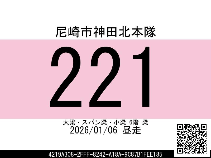 221 | 尼崎市神田北本隊 | 大梁・スパン梁・小梁 6階 梁